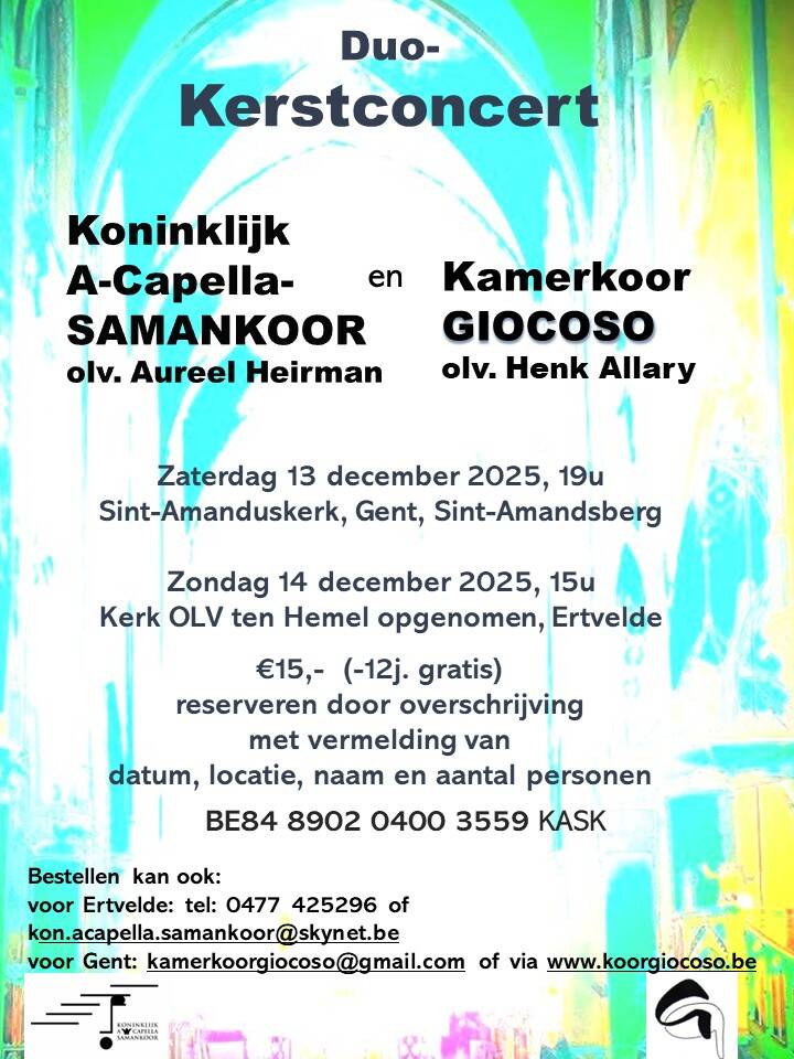 en sloten ons jubileumjaar af met een duo-kerstconcert , in samenwerking met het Koninklijk A-Capella-Samankoor uit Ertvelde.